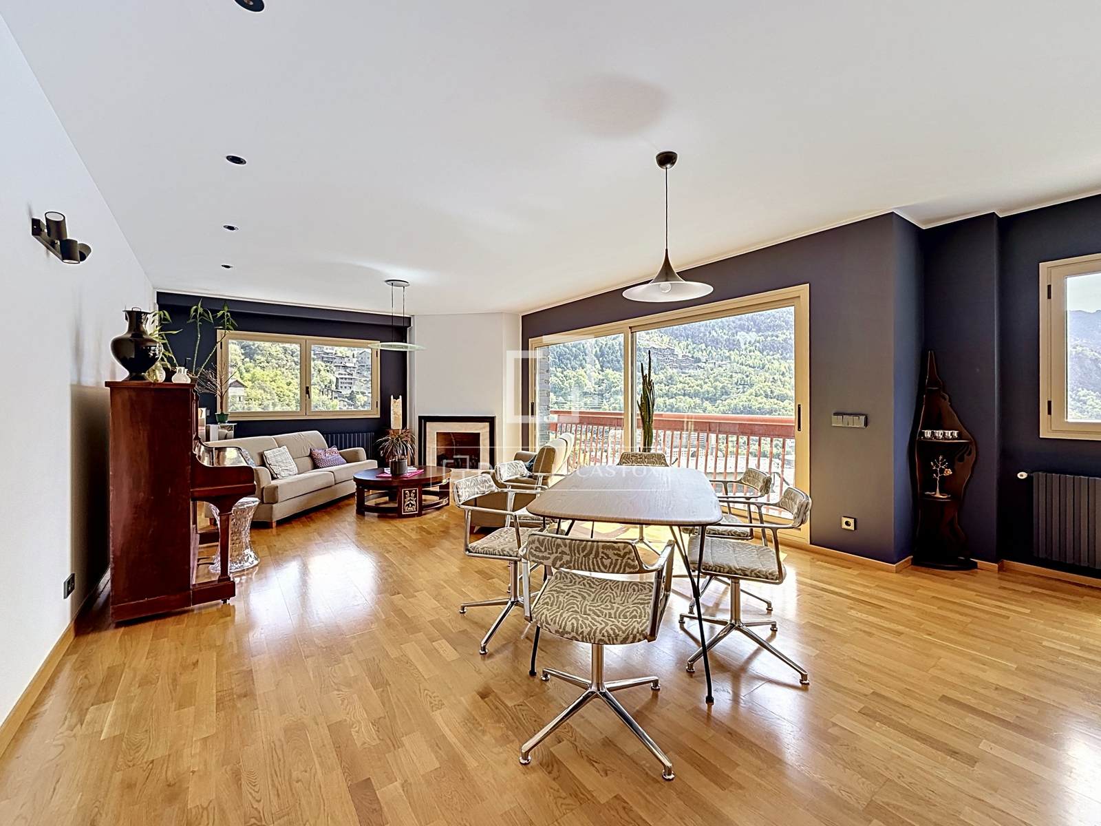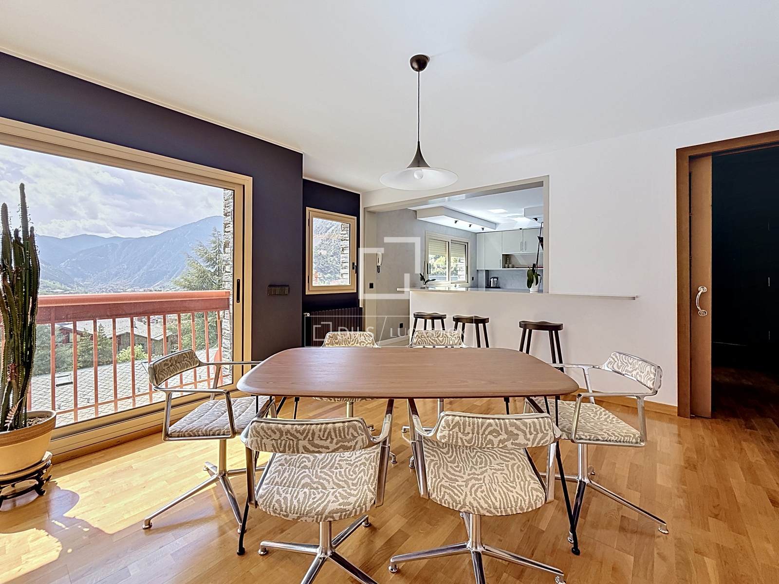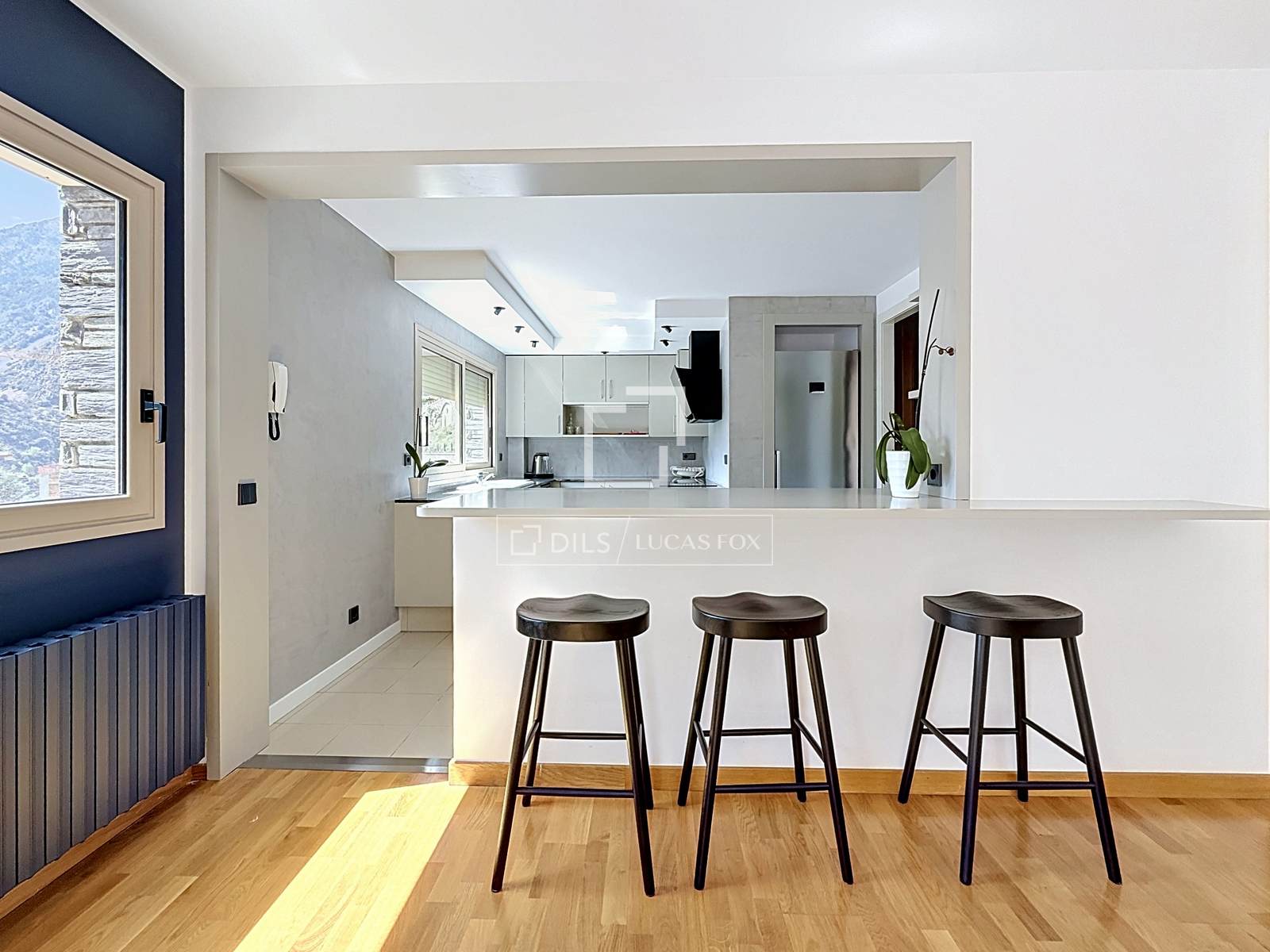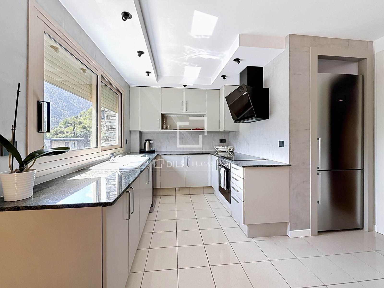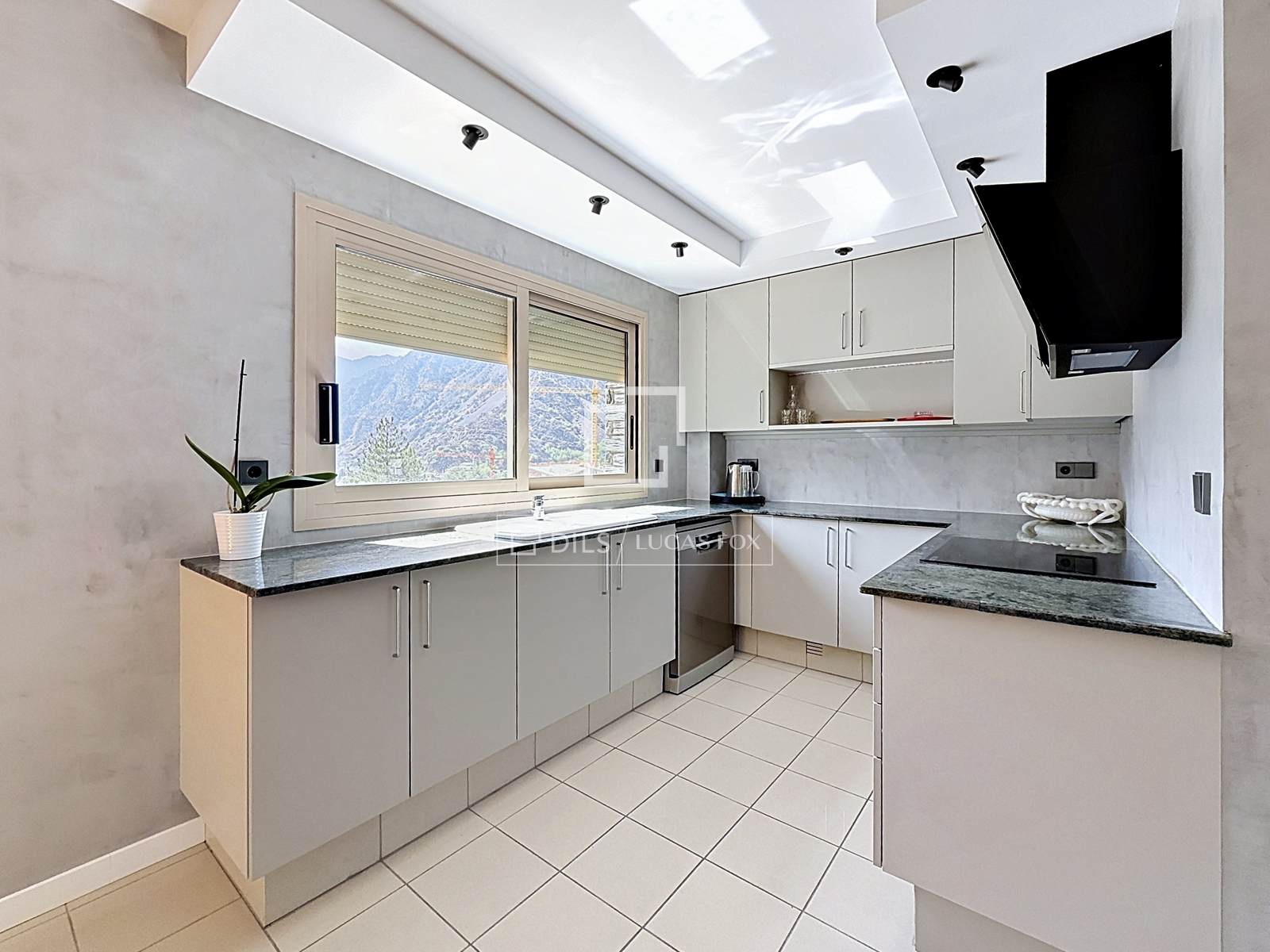 Beim Betreten des Hauses empfängt Sie ein geräumiges Foyer, von dem aus die verschiedenen Räume zugänglich sind und Wohn- und Schlafbereich klar voneinander trennen. Der Wohnbereich verfügt über eine moderne, voll ausgestattete offene Küche mit einer praktischen Frühstücksbar für sechs Personen – ideal für den Alltag oder zum Bewirten von Gästen. Angrenzend befindet sich ein helles Wohn-Esszimmer mit Kamin und atemberaubendem Panoramablick über die Gemeinde Escaldes-Engordany und Andorra la Vella, das dank seiner optimalen Ausrichtung den ganzen Tag über von natürlichem Licht durchflutet wird.