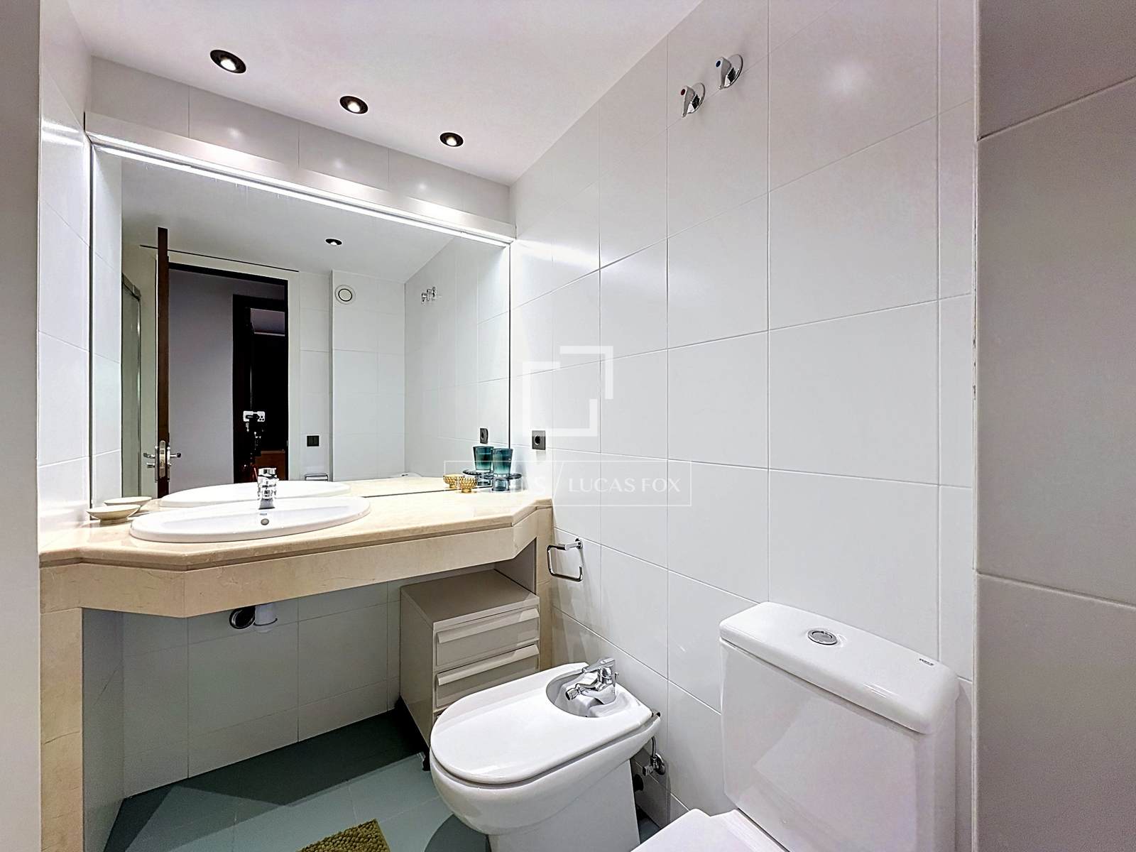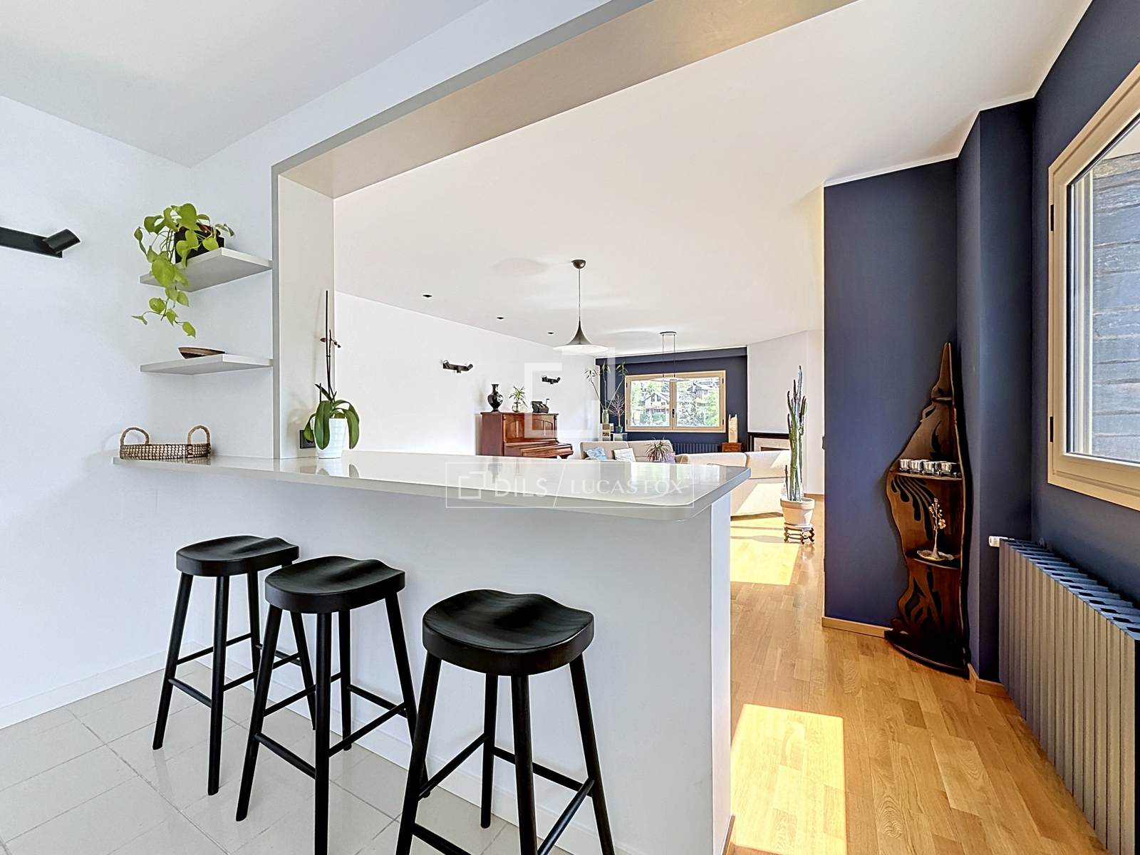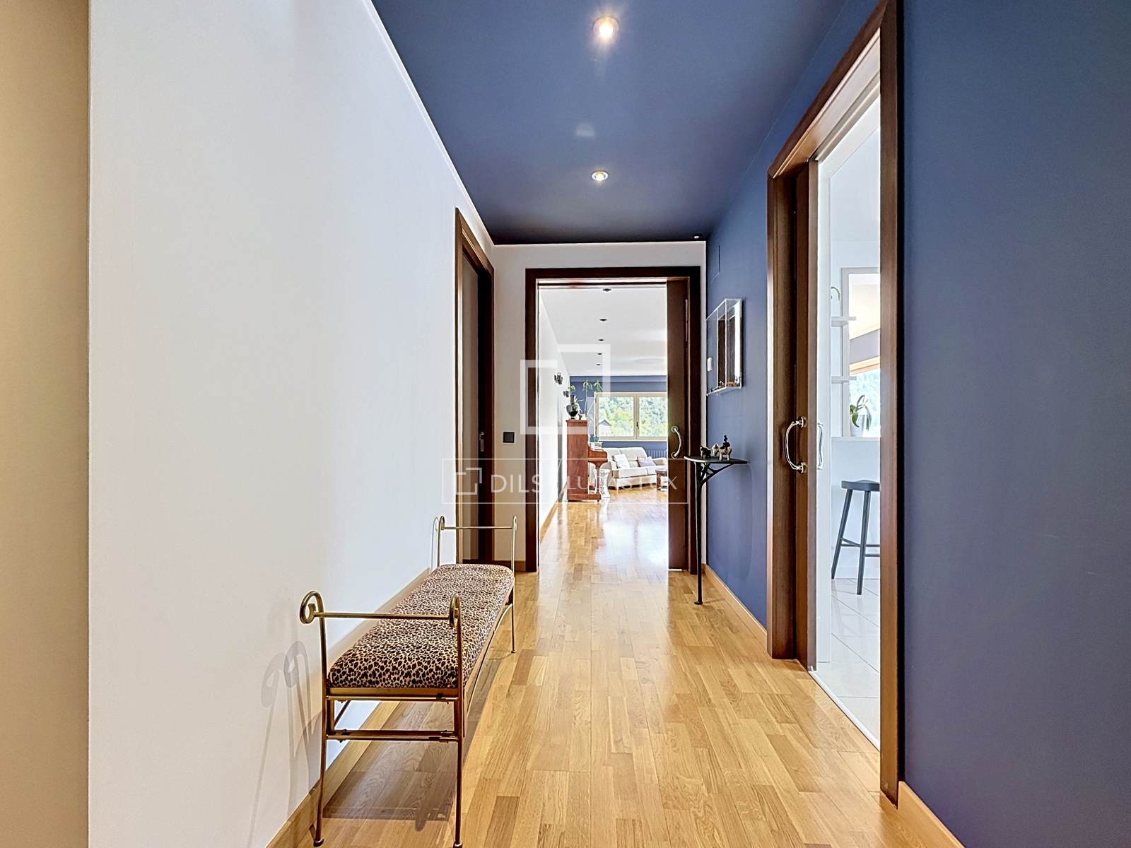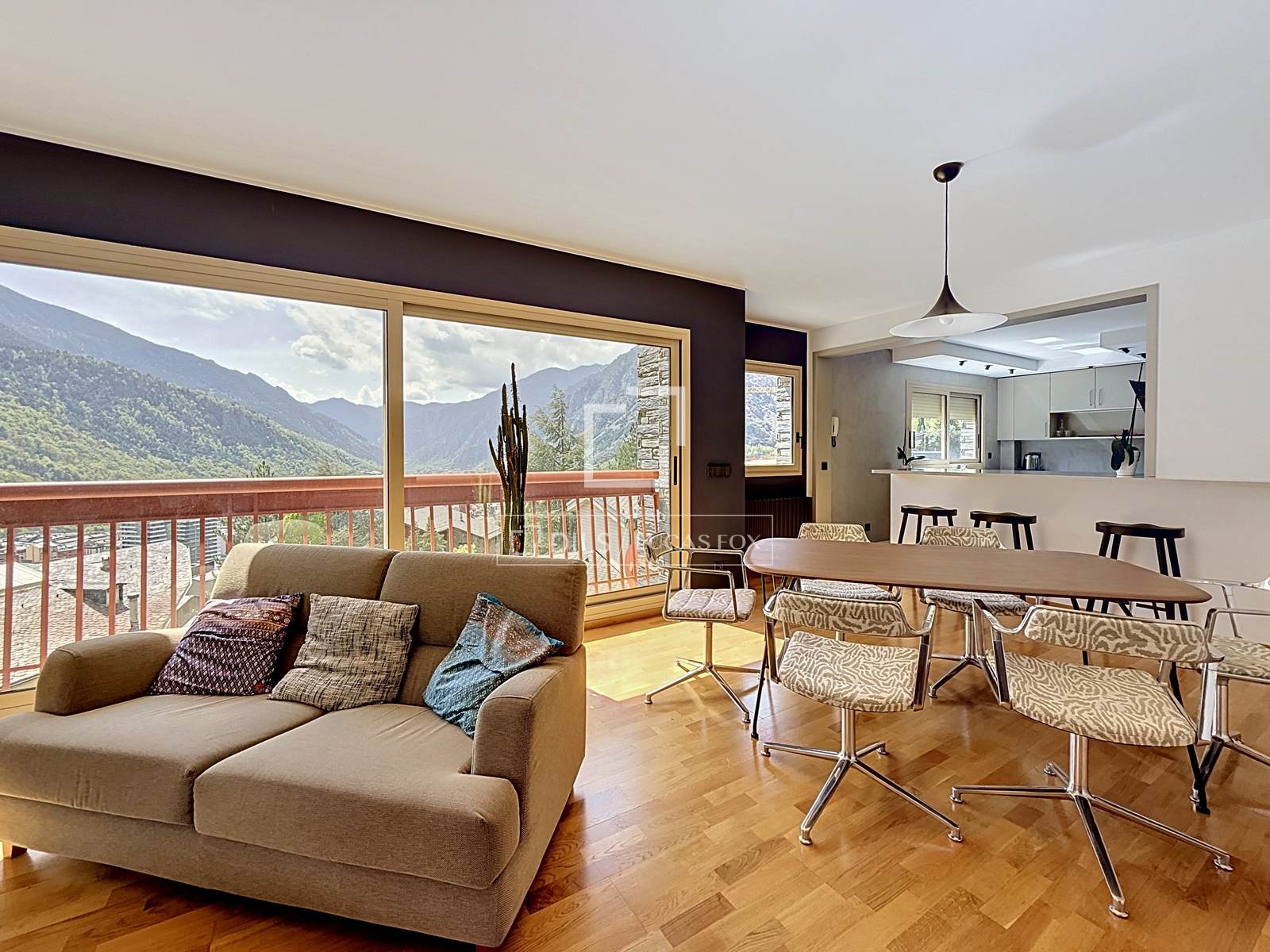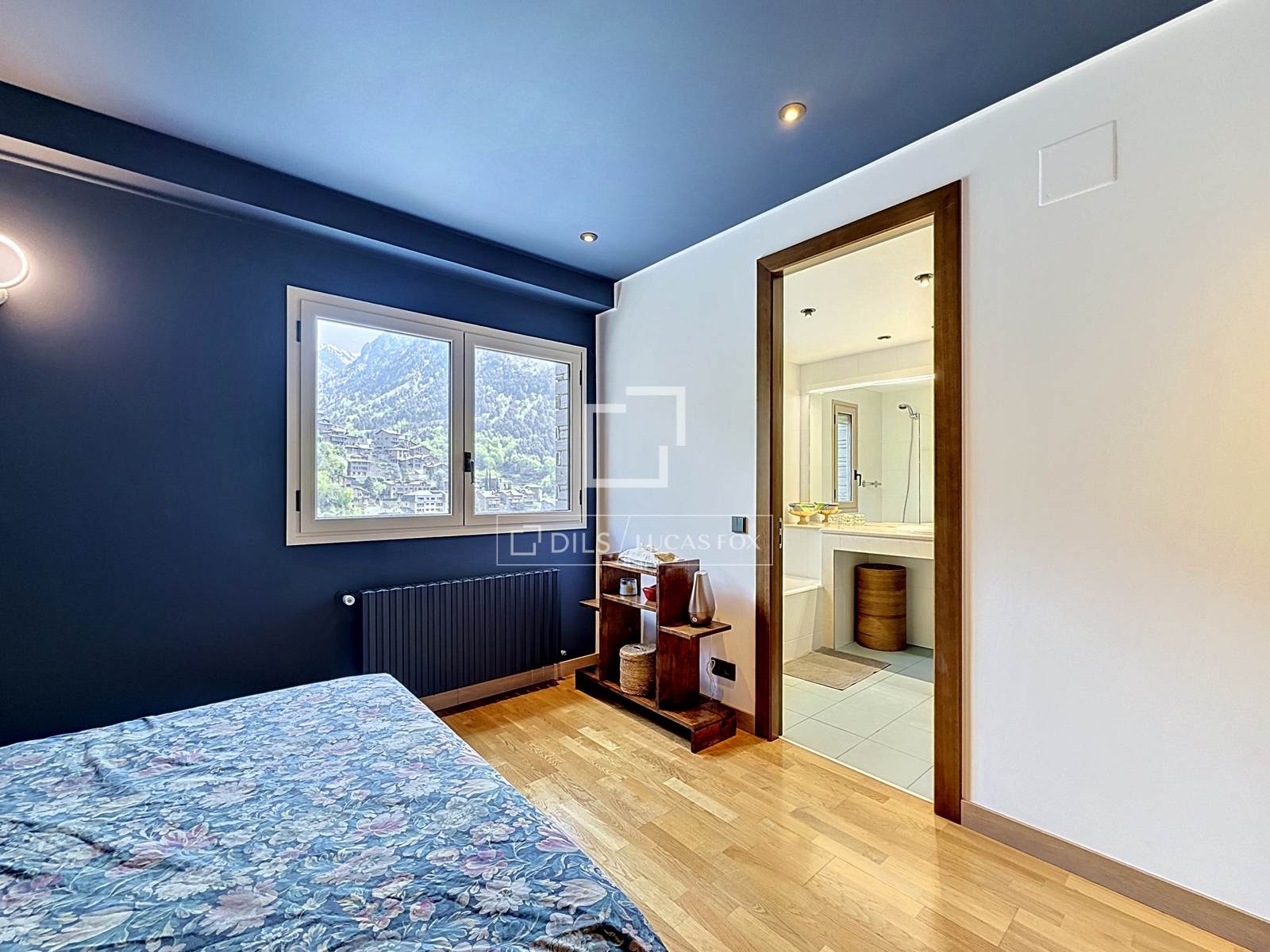 Beim Betreten des Hauses empfängt Sie ein geräumiges Foyer, von dem aus die verschiedenen Räume zugänglich sind und Wohn- und Schlafbereich klar voneinander trennen. Der Wohnbereich verfügt über eine moderne, voll ausgestattete offene Küche mit einer praktischen Frühstücksbar für sechs Personen – ideal für den Alltag oder zum Bewirten von Gästen. Angrenzend befindet sich ein helles Wohn-Esszimmer mit Kamin und atemberaubendem Panoramablick über die Gemeinde Escaldes-Engordany und Andorra la Vella, das dank seiner optimalen Ausrichtung den ganzen Tag über von natürlichem Licht durchflutet wird.