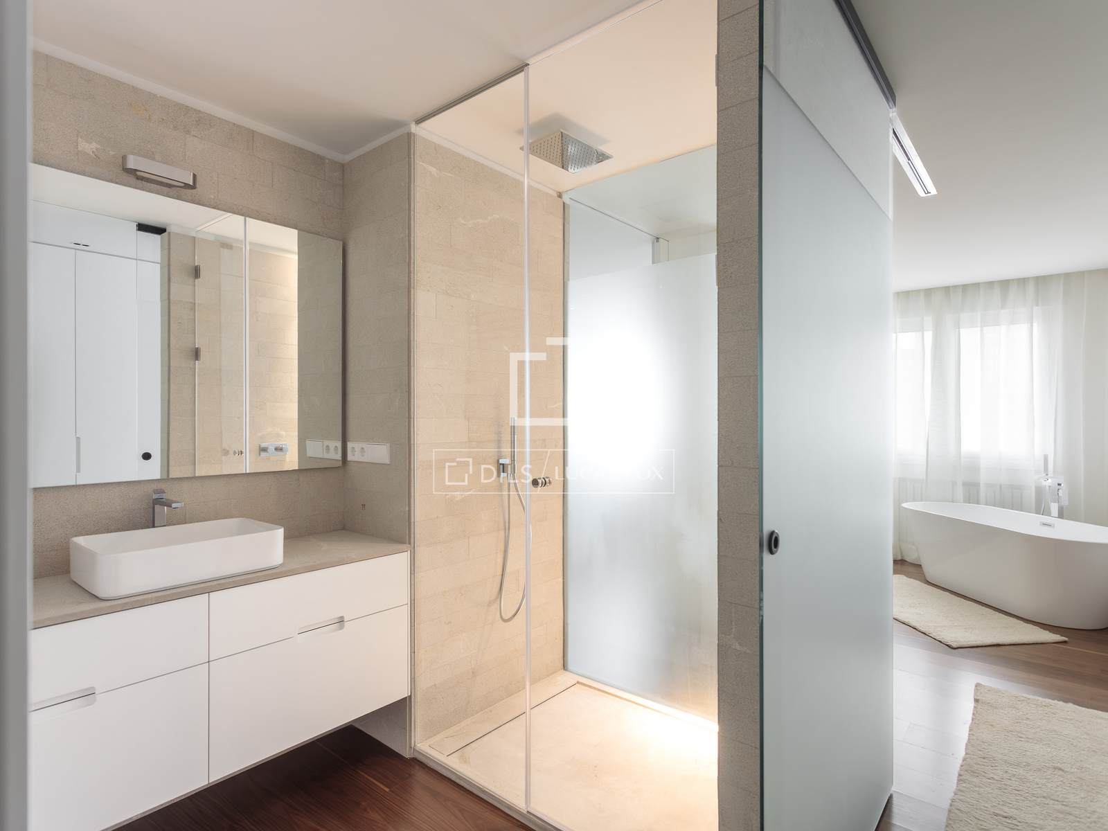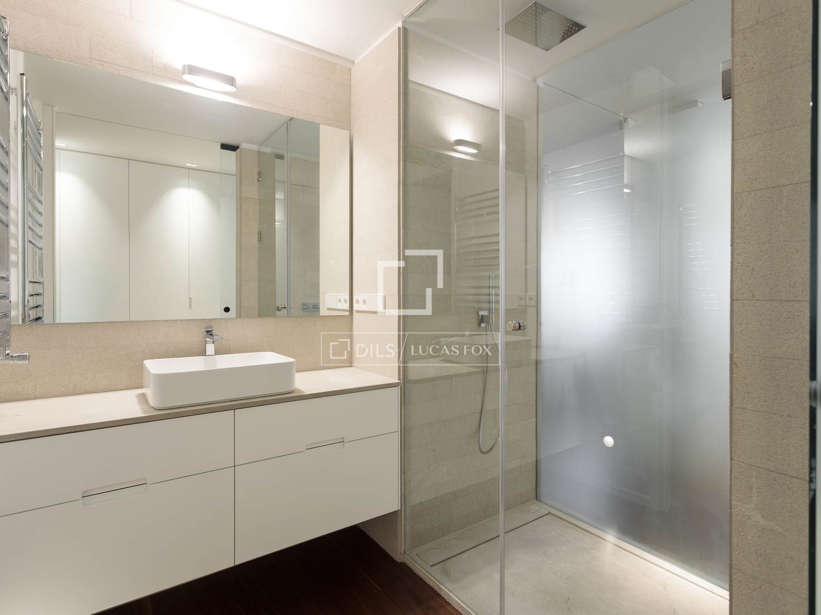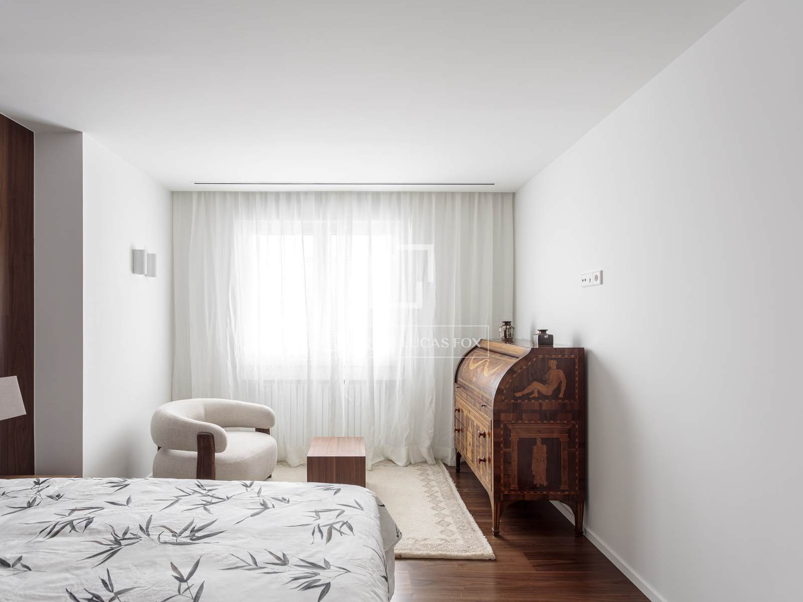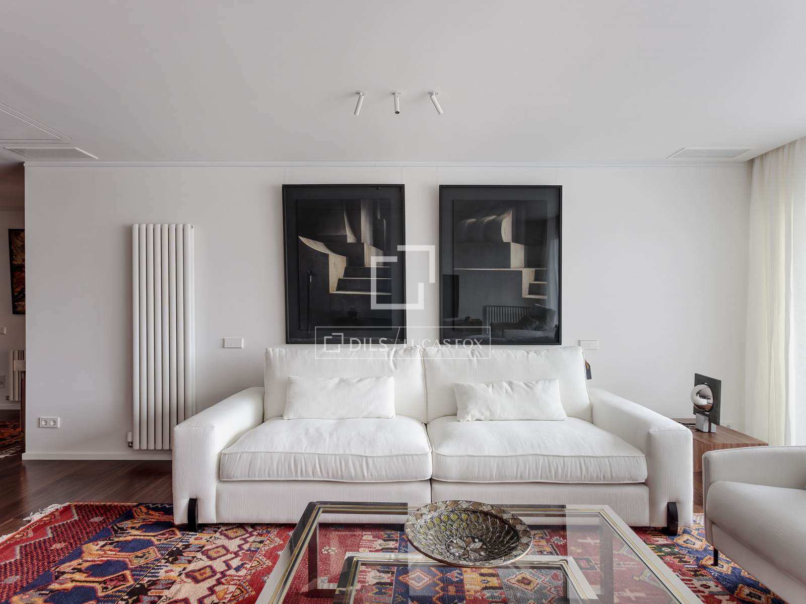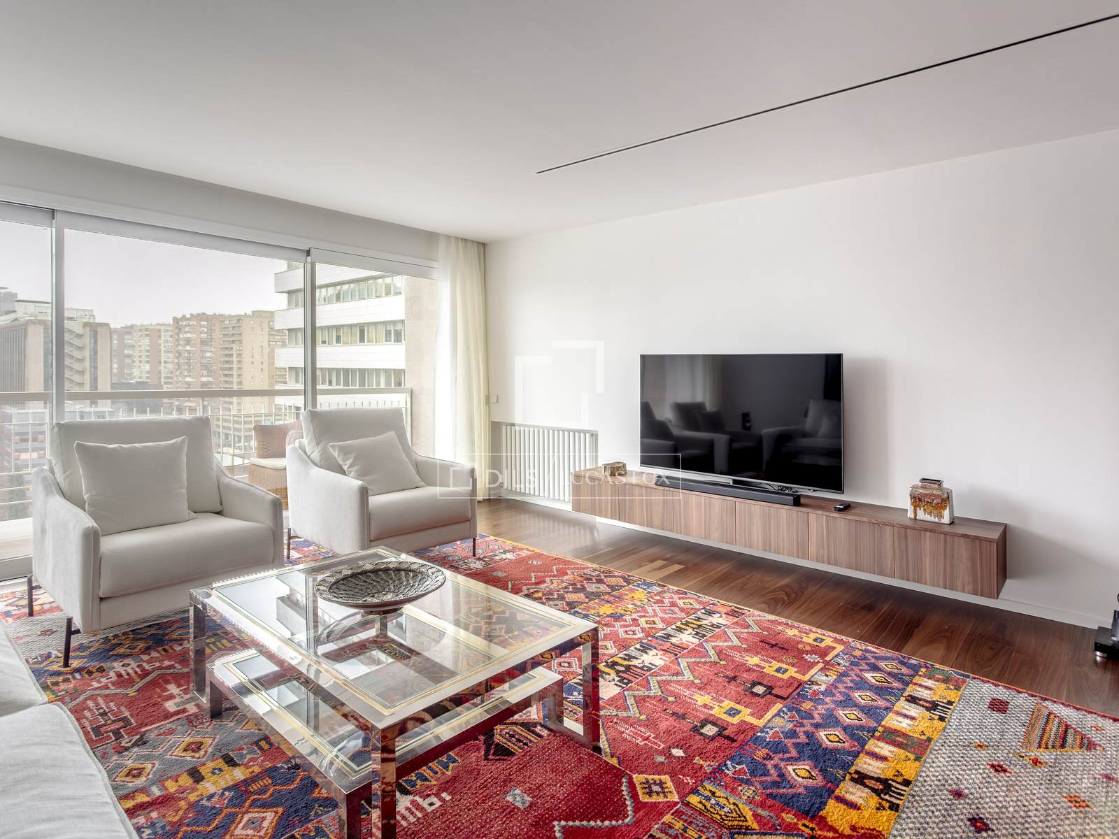 Dils Lucas Fox präsentiert dieses spektakuläre, 240 m² große Apartment, komplett renoviert und bezugsfertig. Design, Qualität und Komfort verschmelzen hier harmonisch. Jeder Raum wurde mit viel Liebe zum Detail und unter Verwendung hochwertigster Materialien und edler Oberflächen gestaltet. Die Wohnung kann je nach Bedarf des zukünftigen Eigentümers möbliert oder unmöbliert erworben werden. Der Wohnbereich ist bemerkenswert geräumig und hell und verfügt über eine Designerküche mit modernsten Geräten – perfekt für den Alltag und kulinarische Genüsse. Das Apartment bietet drei Doppelschlafzimmer, zwei davon mit eigenem Bad. Das Hauptschlafzimmer umfasst zudem ein Ankleidezimmer und ein exklusives Badezimmer mit separater Dusche und Badewanne – eine wahre Oase der Entspannung und des Wohlbefindens. Die Terrasse dieses Apartments bietet einen herrlichen Panoramablick über Madrid und sorgt den ganzen Tag über für viel natürliches Licht. Zur Immobilie gehört außerdem ein Parkplatz im selben Gebäude in der Rua Poeta Joan Maragall – einer erstklassigen Lage, die Ruhe, Annehmlichkeiten und hervorragende Verkehrsanbindung vereint. Ein einzigartiges Zuhause für alle, die Exklusivität, Qualität und eine unschlagbare Lage in Madrid suchen.